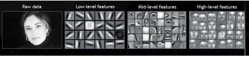 의문에 대한 해답은 딥러닝은 "계층적인 특징"을 "스스로"학습한다. 라는 점입니다. 모델의 초기 low level layer는 일반적인(general) feature를 추출하고 모델이 쌓일수록 high level에서는 구체적인(specific)한 특징을 추출해내는 고도화된 학습이 이루어집니다. 따라서 초기 layer의 feature들은 학습할 때 재사용해도 되지만 후반부에 위치한 layer의 feature들은 재학습이 필요하다는 뜻입니다. 위 이미지를 보면 level단계 별 features의 특징을 볼 수 있습니다. low level features들은 단순 곡선인 것을 확인 가능합니다.