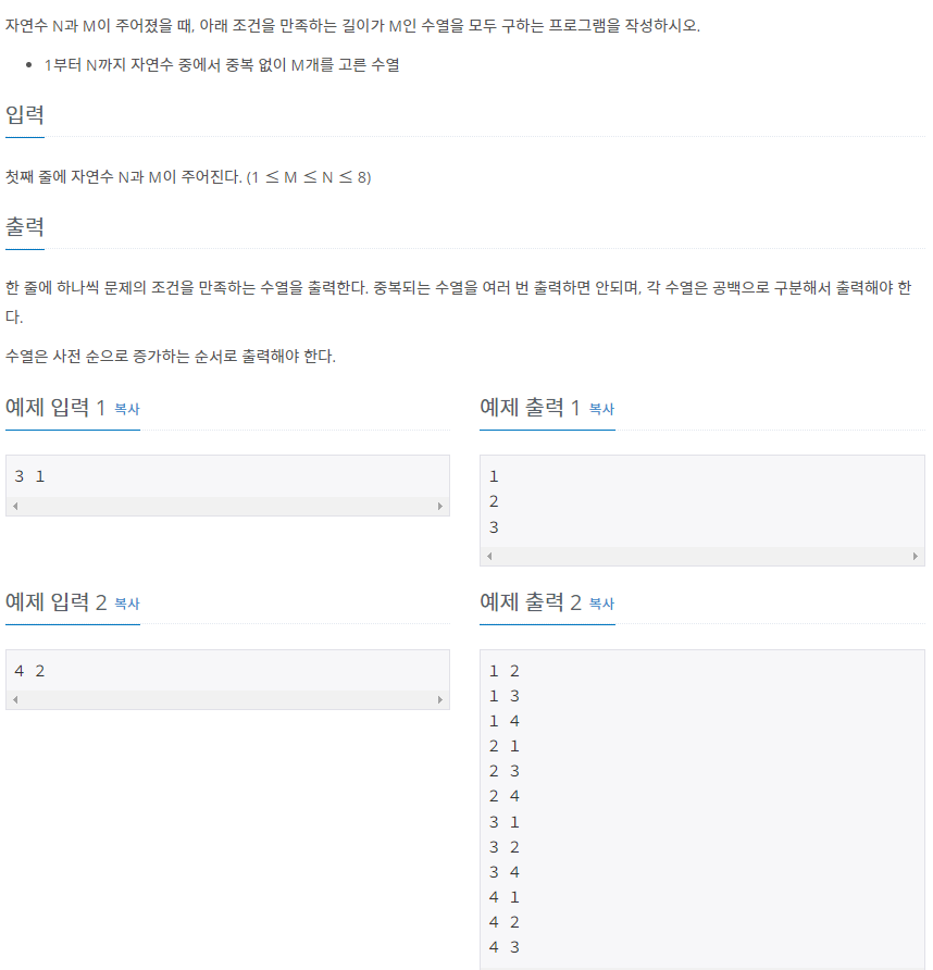 https://www.acmicpc.net/problem/15649