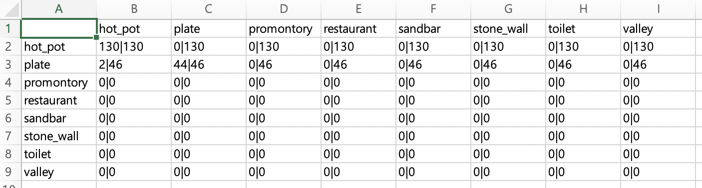 num_arr = [[0 for col in range(len(classes))] for row in range(len(classes))]