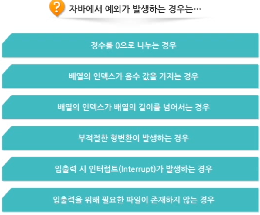 - 예외 역시 객체로 처리하며 객체를 생성할 클래스가 필요함