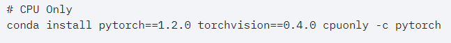 pytorch 1.2.0 버전은 구버전이기에 아래의 링크에서 맞는 명령어를 찾아서 설치하였습니다.