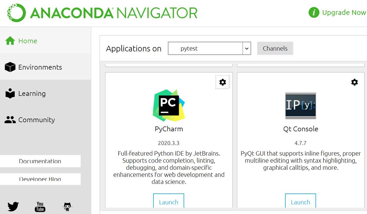 Anaconda를 설치하면 NAVIGATOR도 자동으로 설치가 되는데 Application on 항목으로 가상 환경을 쉽게 설정할 수 있고 그 환경에 맞는 Pycharm이나 Jupyter notebook도 쉽게 접근이 가능합니다.