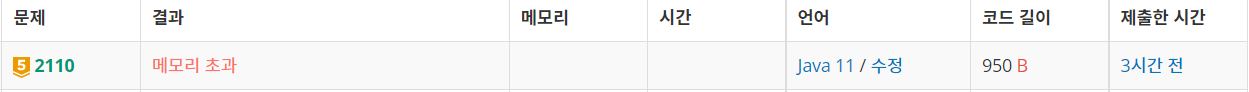 답은 메모리초과가 되었다. 만약 이 문제를 보고 누군가는 조합이라고 생각되어 문제를 풀 수도 있을 것 같다.