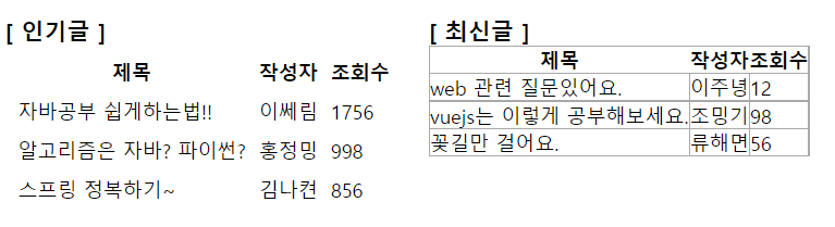 - 실패한 경우의 코드는 table1의 td까지도 border값이 들어간다.