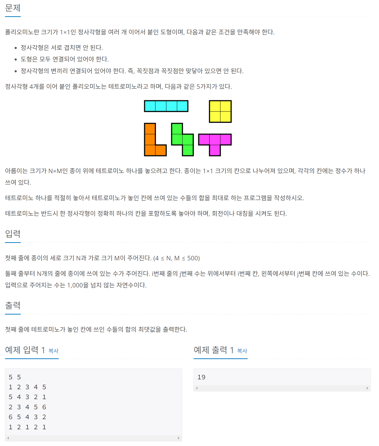 - 'ㅗ' 모양을 제외한 다른 모양들은 dfs 순열을 통해 만들 수 있는 점이 팁?이다.