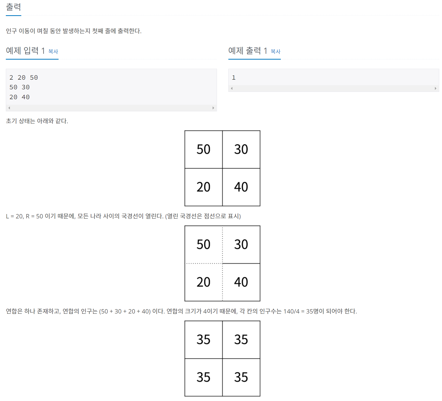 - while() 문 안에서 check() 함수를 통해 인구이동이 가능한지 먼저 체크한다.
