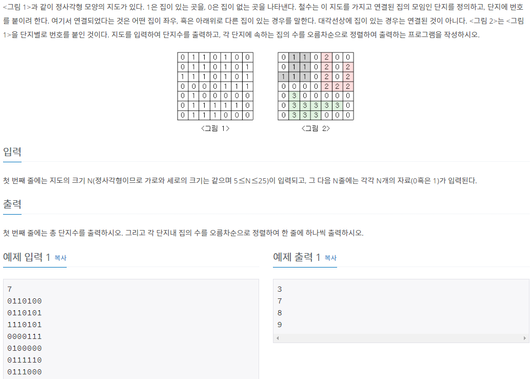 오늘은 백준의 단계별 풀어보기에서 DFS와 BFS단계 단지 번호 붙이기 문제를 풀어보았습니다.