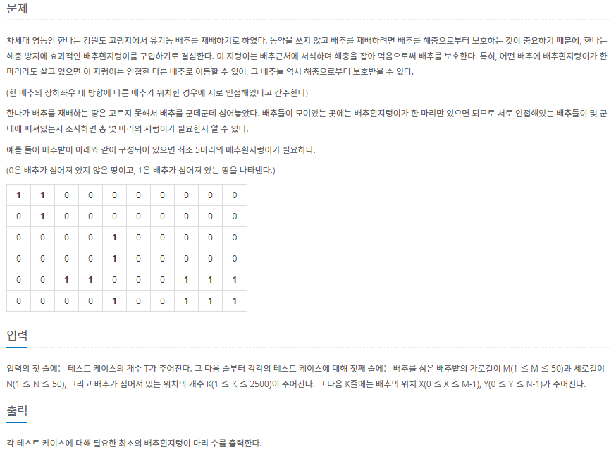 [알고리즘] 백준 1012 유기농 배추 - 파이썬 본문