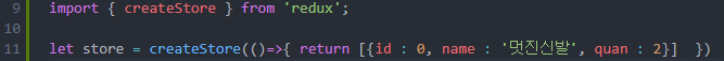 3. createStore를 import해온 뒤에 createStore(콜백 함수) 형태로 변수에 담습니다.