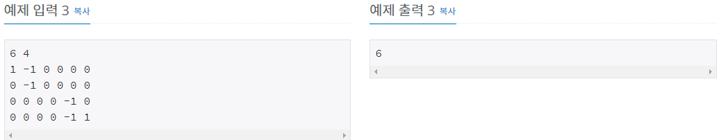 위 예제 입력 3)을 예로 들면 반복문을 돌면서 큐에 '1'인 인덱스인 0,0과 3,5가 담긴다 => deque([0,0]. [3,5])
