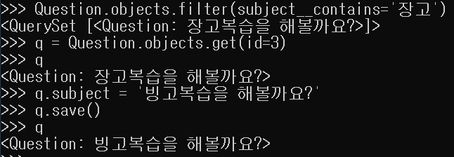 데이터를 수정하고 싶을 땐 장고 셸로 진입한다.