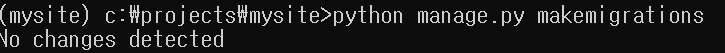 4. makemigrations로 테이블 작업 파일을 생성한다.
