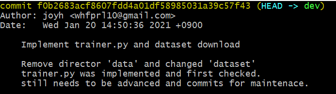 커밋도 중간중간 자주 해주는 것이 좋은 것 같다. git을 신경도 안쓴채 코드부터 데이터셋을 모두 add하느라 시간도 걸리고 애도 먹었다..