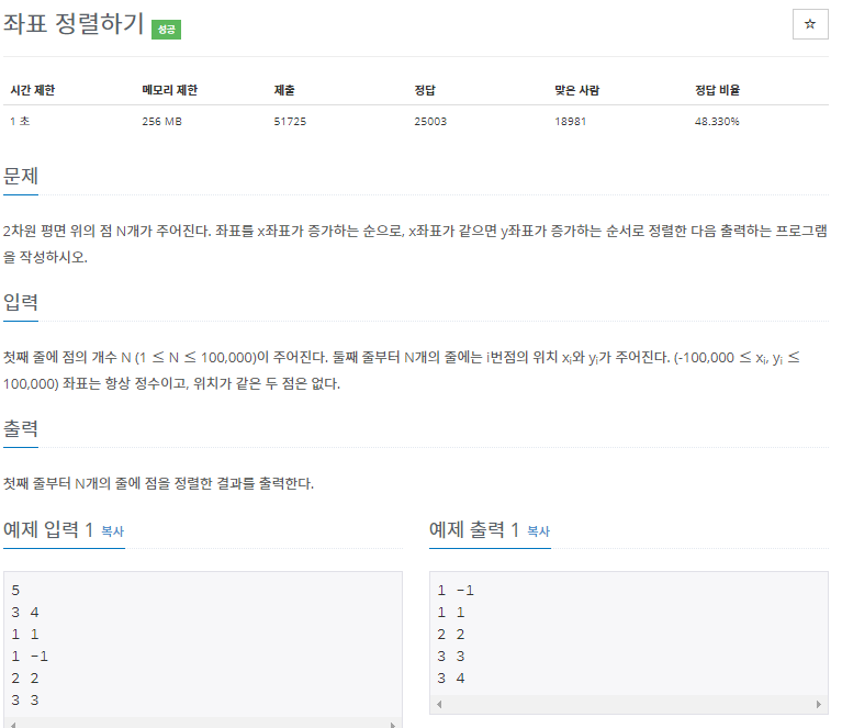 https://www.acmicpc.net/problem/11650