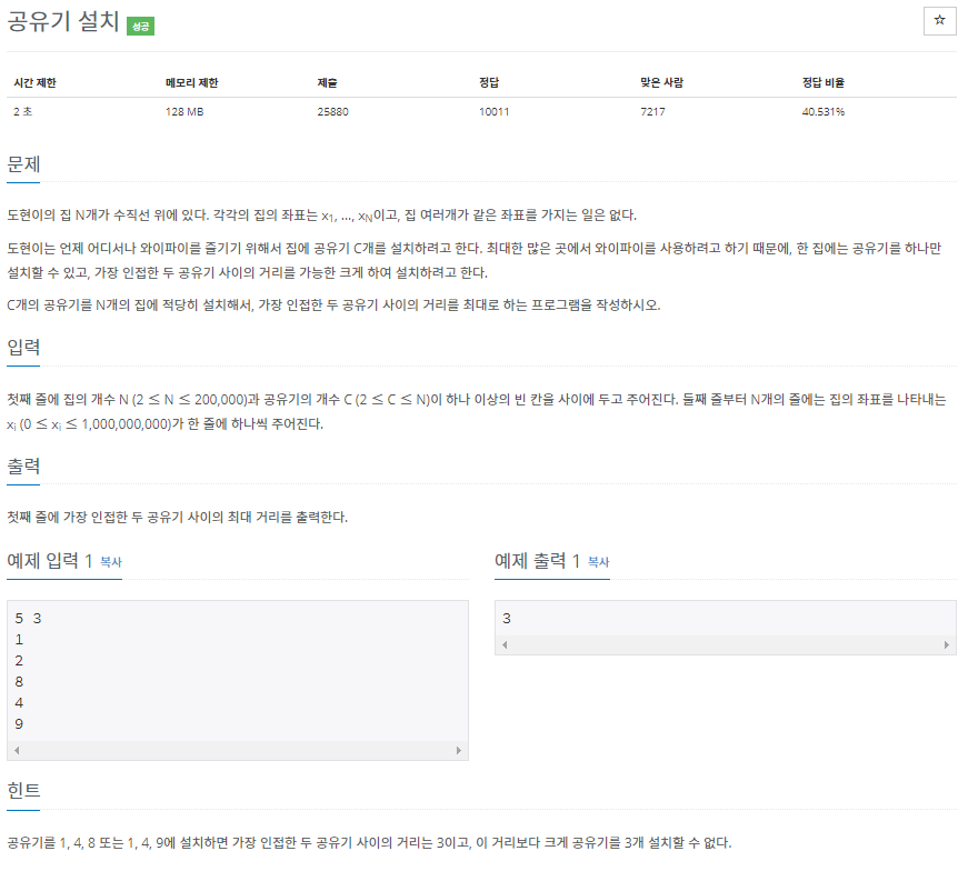 정답률: 47.63% 풀이시간: 40분 분류: 이분 탐색 링크: [link]