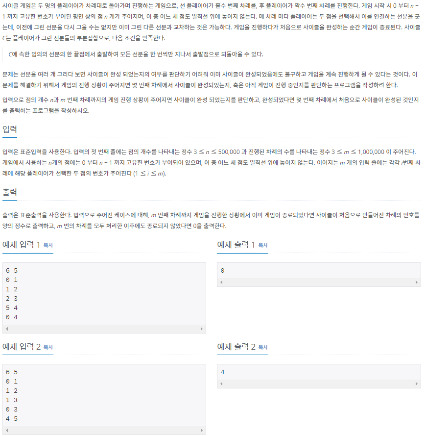 [알고리즘] 백준20040 사이클 게임 - 파이썬 본문