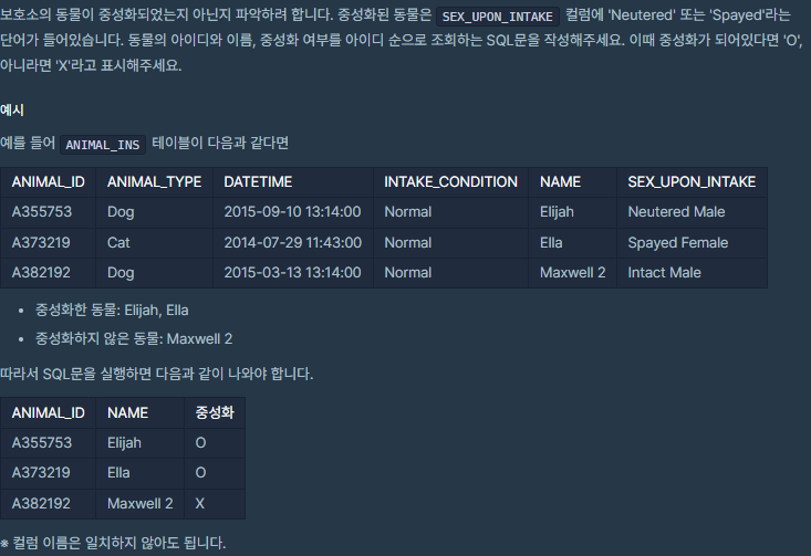 SELECT ANIMAL_ID, NAME, IF(SEX_UPON_INTAKE REGEXP 'Neutered|Spayed', 'O' , 'X') AS 중성화 FROM ANIMAL_INS
