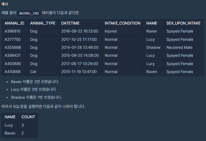 #2. [프로그래머스] 동명 동물 수 찾기 - Level2
