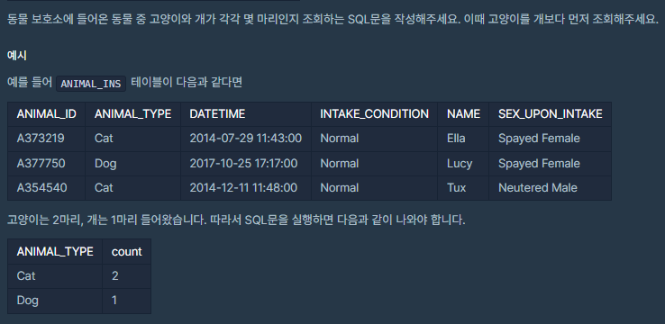 #1. [프로그래머스] 고양이와 개는 몇 마리 있을까 - Level 2